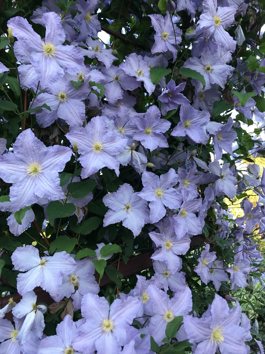 Описание: Блекитни Аниол – компактное растение, обычно вырастает не более 1,5 м. Стебли вьются, хорошо цепляясь за опору. Цветок немахровый, имеет голубоватый оттенок, с белой сердцевиной. Пыльники желтого цвета. В диаметре каждый цветок может достигать 6-8 см. Лепестки у цветов овальные и волнистые по краям. Сорт является среднецветущим, обильно цветет с июня по сентябрь, бутоны формируются на молодых побегах. Клематис цветет повторно.