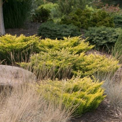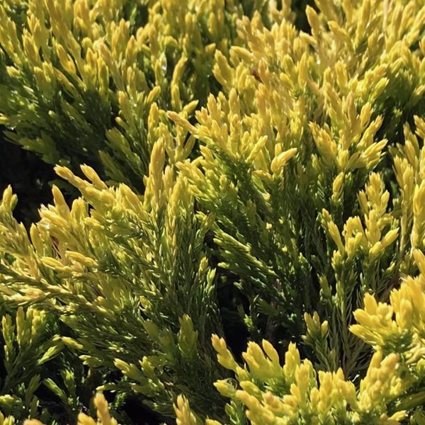 Очень мелкая, игольчатая осенью становится оранжево-бронзовой. Молодые растения летом полностью желтеют, взрослые растения окрашиваются в золото только в верхней, обращенной к солнцу, части, оставаясь зелеными снизу.