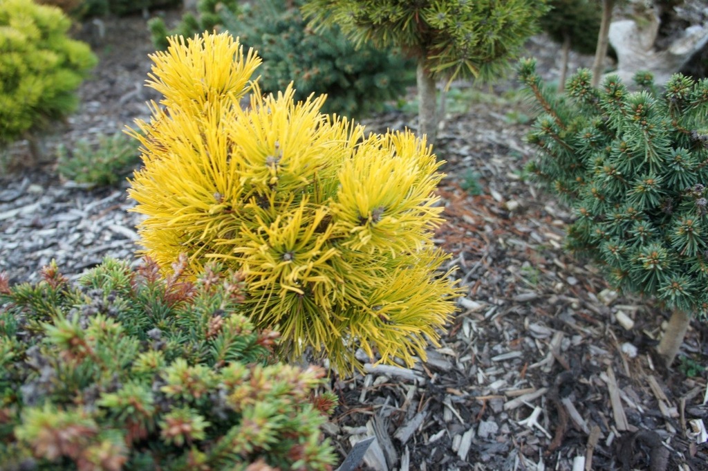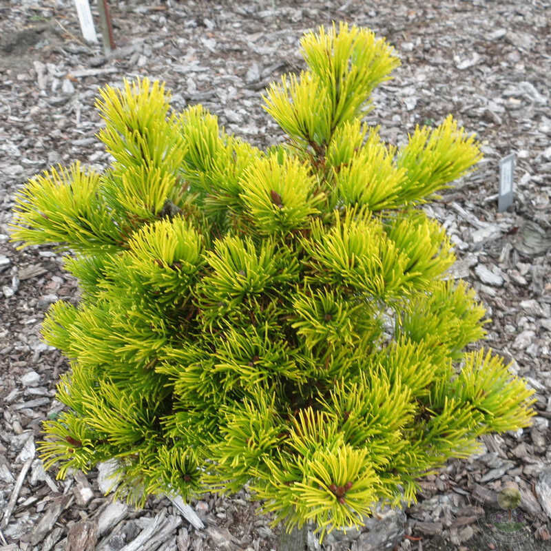 Сосна горная "Мопс Голд" — это компактное и привлекательное хвойное растение с округлой формой и густыми, короткими иголками ярко-желтого цвета. Эта миниатюрная сосна станет стильным акцентом в вашем саду, добавляя ему солнечного света и живости.