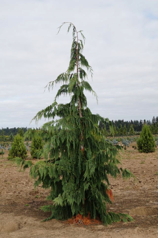 Кипарисовик нутканский «Пендула» - вечнозеленое хвойное дерево, способное украсить любой пейзаж. Прямой ствол, конической формы крона с поникающими побегами, ассиметрично и редко расположенные ветви создают загадочный, почти сказочный образ. Хвоя мягкая, чешуйчатая, ароматная, темно-зеленая. Уже на второй год появляются округлые шишки диаметром 1 см. Растет дерево средними темпами, достигая к 10 годам высоты 3 м, а ширины - 3,5 м.