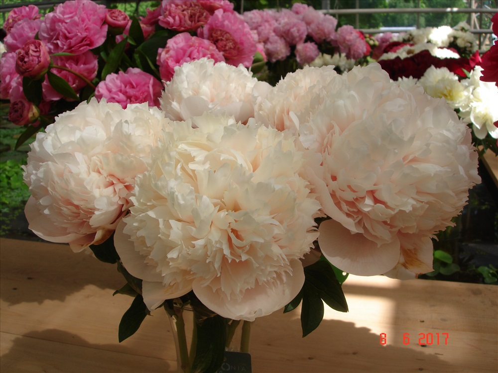Редкий сорт. В начале цветения персиково-розовый, по мере раскрытия бутона цвет меняется на белый, а персиковый цвет переходит внутрь цветка. Видели вживую на выставках, очень необычный цвет !Бомбовидный, плотный шар.