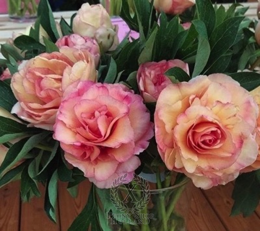 Пион сорта Канари Бриллиантс – полумахровый пион, ИТО-гибрид, который удачно сочетает в себе признаки как древовидных, так и травянистых сортов данных растений.Этот роскошный пионцветёт с середины весны и до июня, махровые цветки нежно-персикового окраса с волнистыми лепестками. Его цветы диаметром до 20 сантиметров не только красивы, но и источают сладковатый, приятный аромат.