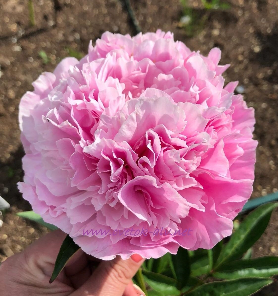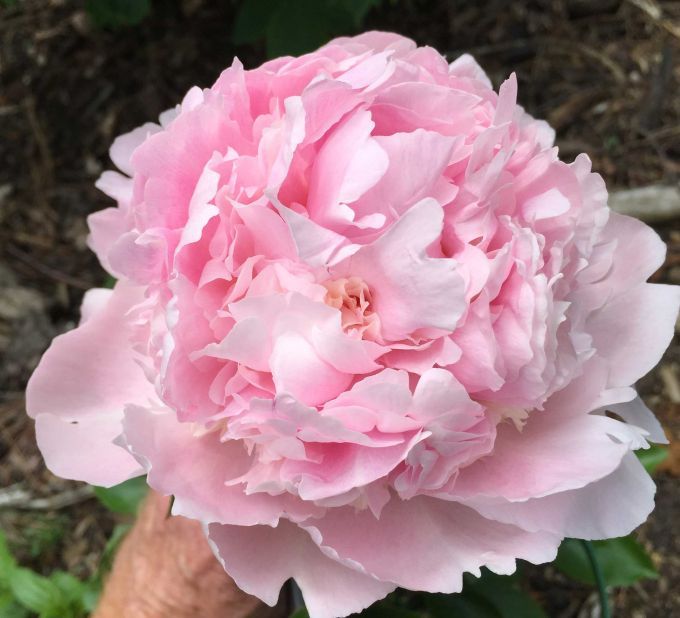 Цветок замечательно сложен. Лепестки образуют нежно-розовый шар, который радует глаз.