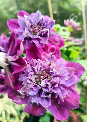 сорт польской селекции (Шчепана Марчинского – 2023) с полумахровыми пурпурно-фиолетовыми с красной полоской, сначала, а затем простыми фиолетовыми цветами диаметром 12-15 см. В цветке 6 внешних и до 20 внутренних лепестков. Тычинки с фиолетовыми пыльниками на зеленоватых тычиночных нитях.