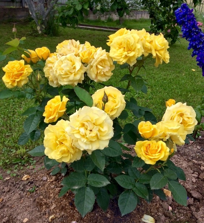 Цветок диаметром 9 см, красивой бокаловидной формы, махровый (35-37 лепестков), канареечно-жёлтый, в соцветиях по 2-10. Аромат лёгкий. Цветение обильное, почти непрерывное. Куст высотой 65-75 см.