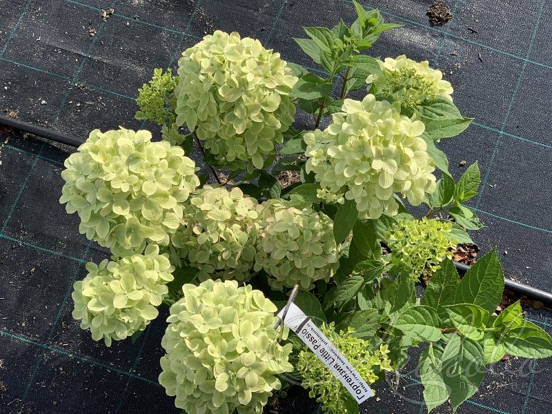 Метельчатая гортензия Little Passion (Hydrangea paniculata Little Passion) - карликовый куст, около 60 см. и диаметром 80 см. В период цветения, куст смотрится одним огромным цветком зеленовато-белого цвета. Очень обильное цветение. Плотные округлые соцветия небольшого размера, не поникают. Окраска цветков меняется со светло-зеленой в начале сезона, затем проявляются розовые тона и цветки становятся розово-кремовыми с оригинальной зеленой серединкой. Цветение в июле-сентябре
