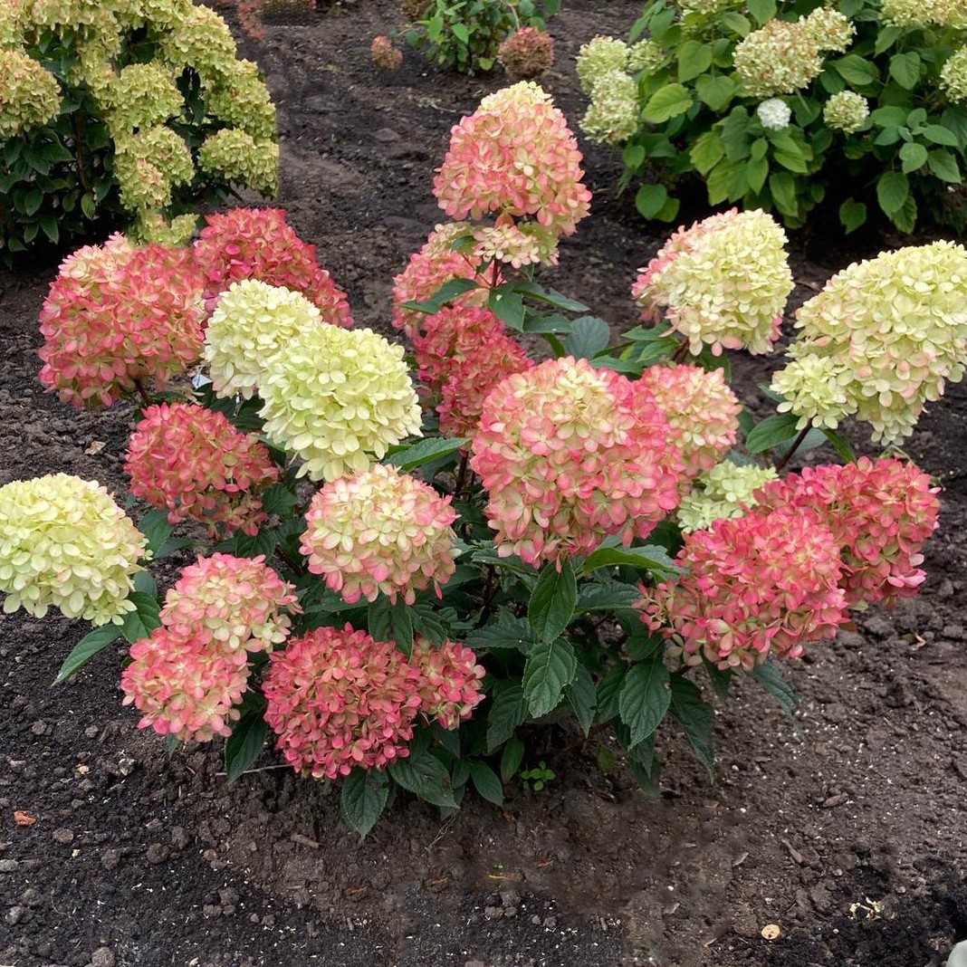 Гортензия метельчатая Литтл Лав (Little Love) - малышка-НОВИНКА 2023! Очень компактный сорт гортензии метельчатой с соцветиями округлой формы. Окраска цветка меняется с зеленого на кремовый и на финише сезона становится светло-розовой с изумительными сочетаниями оттенков. Размер: 70 см в ширину и 70 см в высоту. Продолжительность цветения 100 дней: с июля до начала октября.