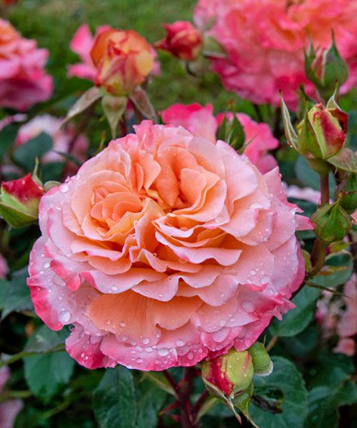 Сказочно прекрасные цветки, поразительно густомахровые, ностальгические, цвета персика. Оттенок меняется в зависимости от погоды от кремово-нежно-розового до абрикосового с налётом красного и жёлтого. Благородная роза с крупными (диаметром 10-12 см) цветками, источающими богатый, сильный, фруктово-сладкий аромат. Благодаря прямым цветоносам подходит для срезки. Листья тёмно-зелёные, невосприимчивые к мучнистой росе, устойчивые к чёрной пятнистости. Кусты плотные, крепкие, густые. Великолепно смотрится в штамбовой культуре. Цветёт в течение всего лета. Это один из лучших сортов!