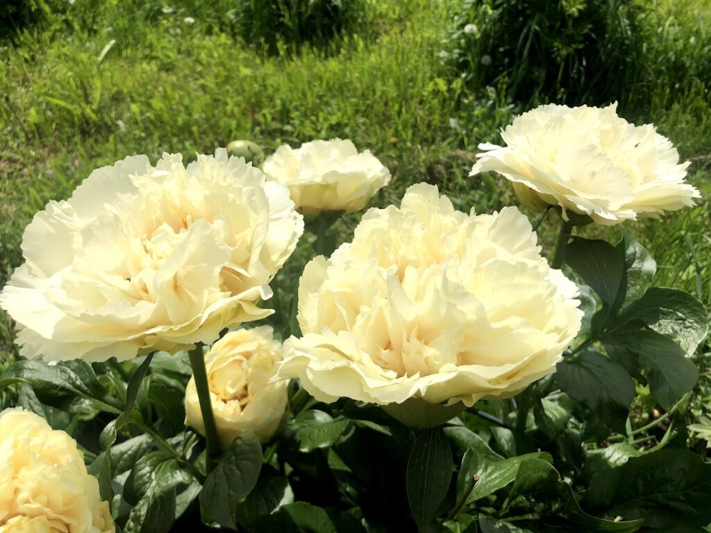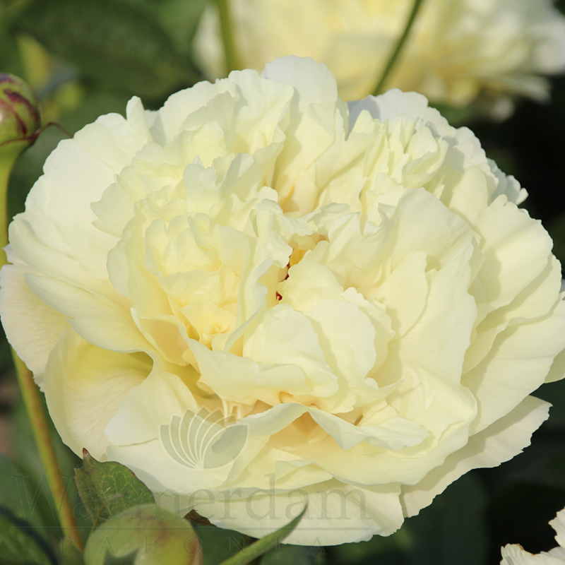 Цветы махровой или полумахровой формы. Бледно-жёлтого цвета слегка переходящий в тёплые сливочные тона. Рыльца розовые, но при полной махровой форме, они практически не видны.