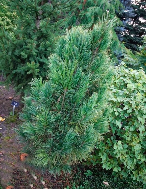 Хвоя красивая, жёсткая, собрана в пучки по 5, мелкозазубренная, длиной до 8 см, тёмно-зелёная.