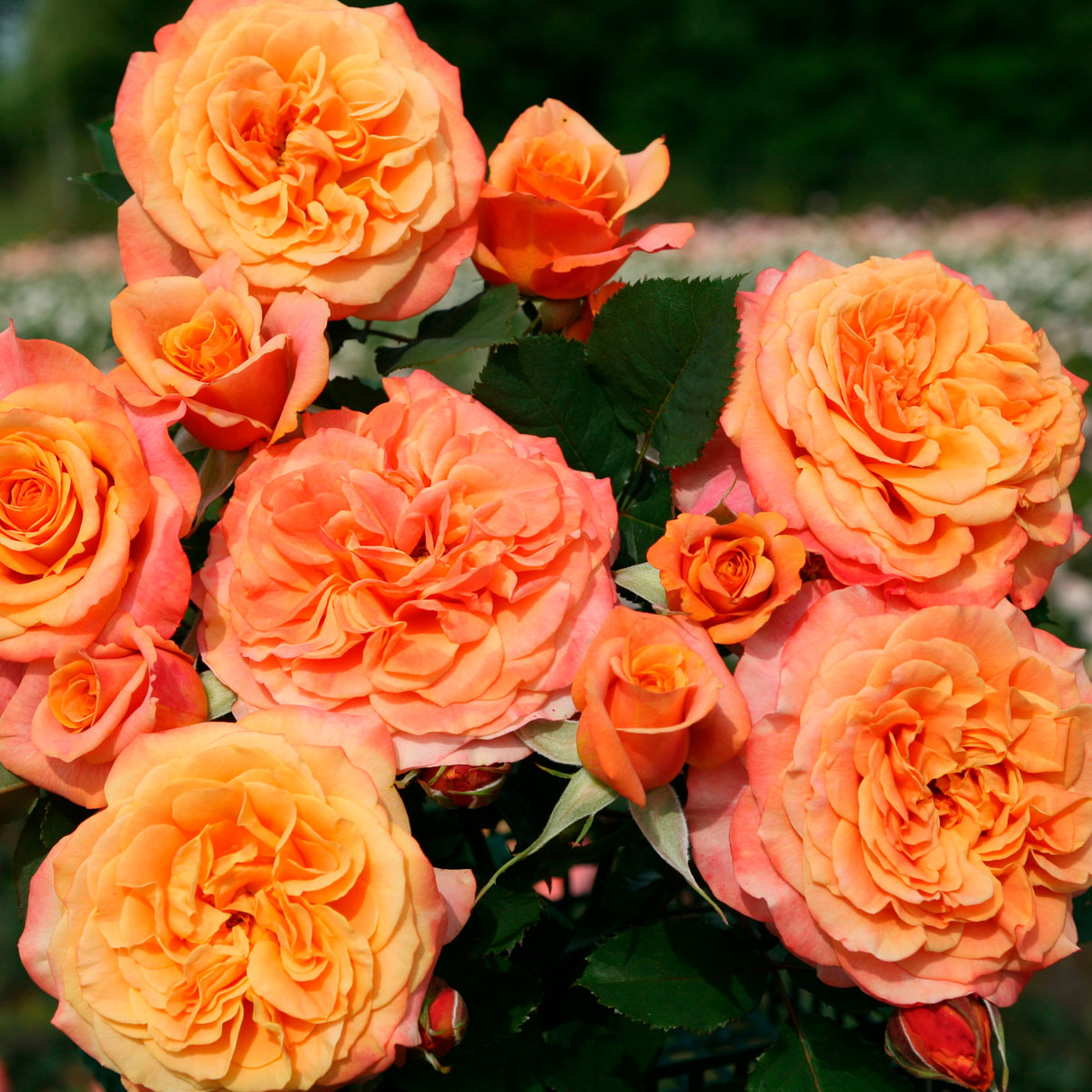 Желтые махровые цветы с медным оттенком и розовыми внешними лепестками очаровательны на фоне темно-зеленой, плотной, глянцевой и здоровой листвы и станут подлинным украшением сада.