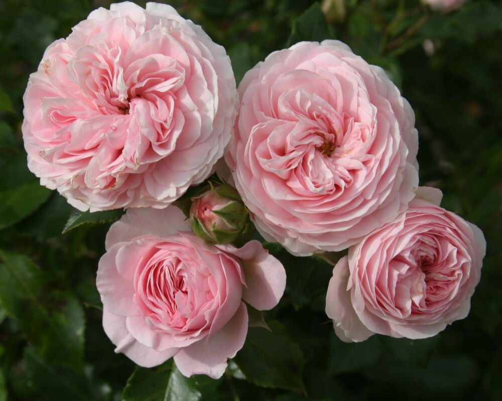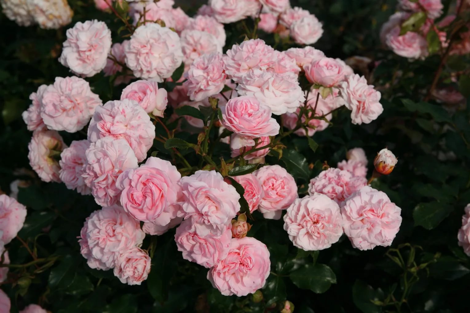 Пышноцветущая малая кустарниковая роза с наполненными, густомахровыми, нежно-розовыми, чашевидными цветками, распускающимися в кистевидных соцветиях по 5-10 шт. Куст мощный, ветвистый, красивой формы, хорошо нарастает.
