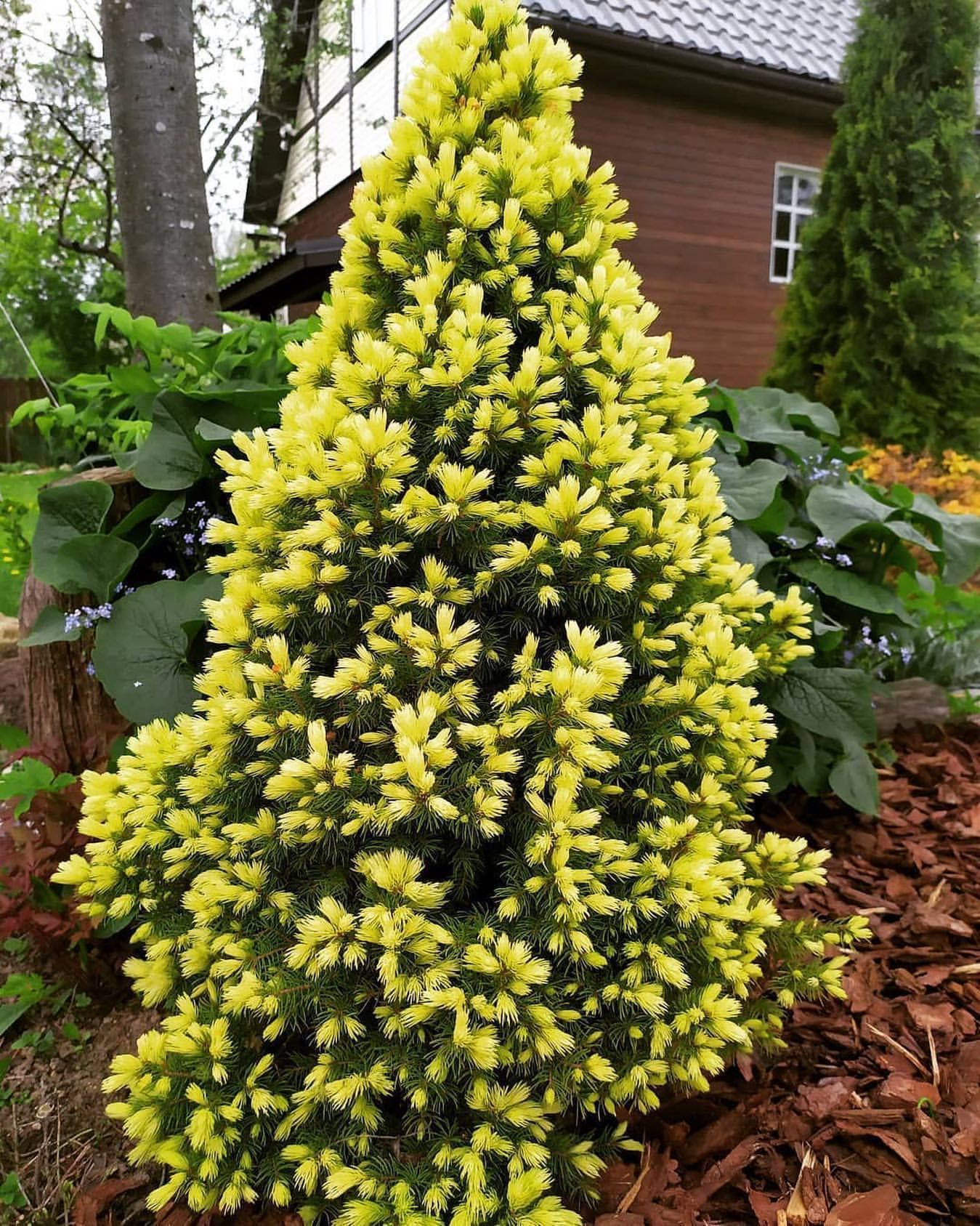 Весенняя окраска хвои данного сорта зависит от условий выращивания. Молодые побеги могут быть кремовыми, золотисто-салатовыми, желтоватыми.